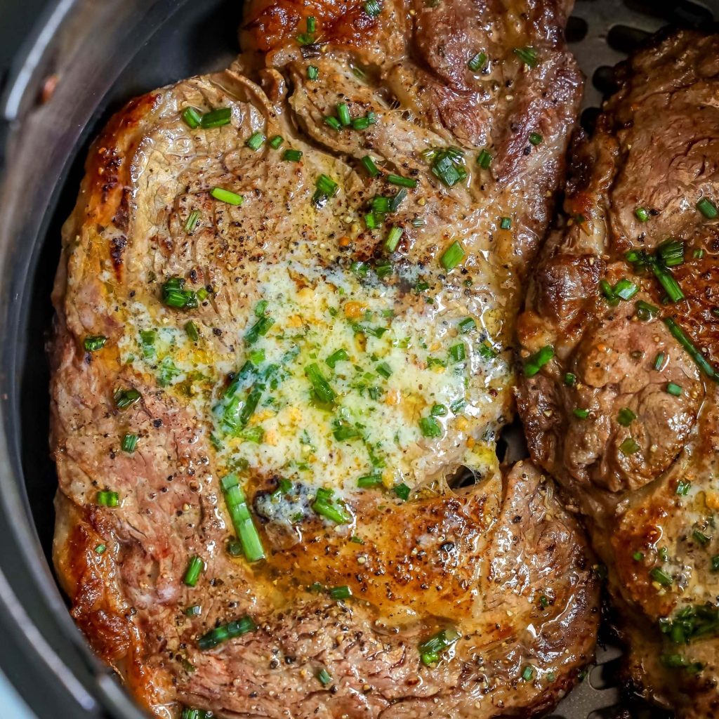 Air Fryer Ribeye Steaks Recipe – delicious tender, juicy ribeye steaks cooked to perfect medium rare in the air fryer!