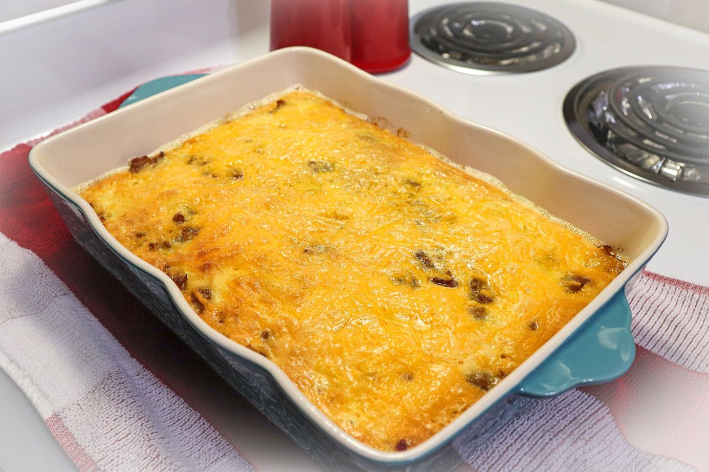 - Fill – Divide the custard evenly between six ovenproof ramekins or custard cups. Carefully place the ramekins into a 13×9 casserole dish and add boiling hot water to the casserole dish, going halfway up the sides of the ramekins.
