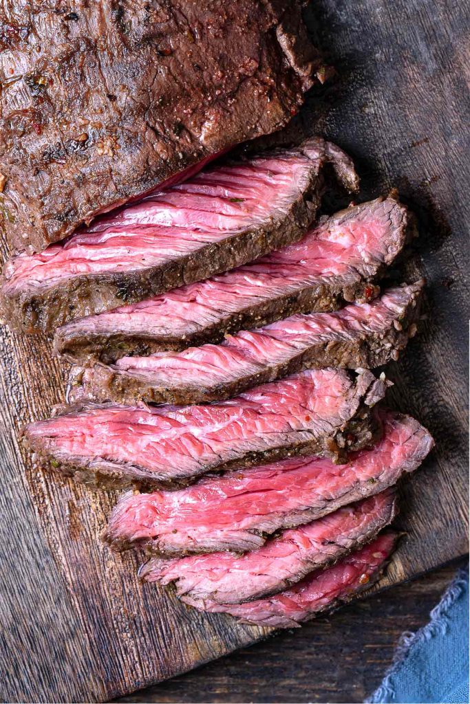 (easiest to see prior to cooking), this is called “the grain”. You’re going to thinly slice the steak in a perpendicular cut, or “against the grain” to achieve the most tender bite.