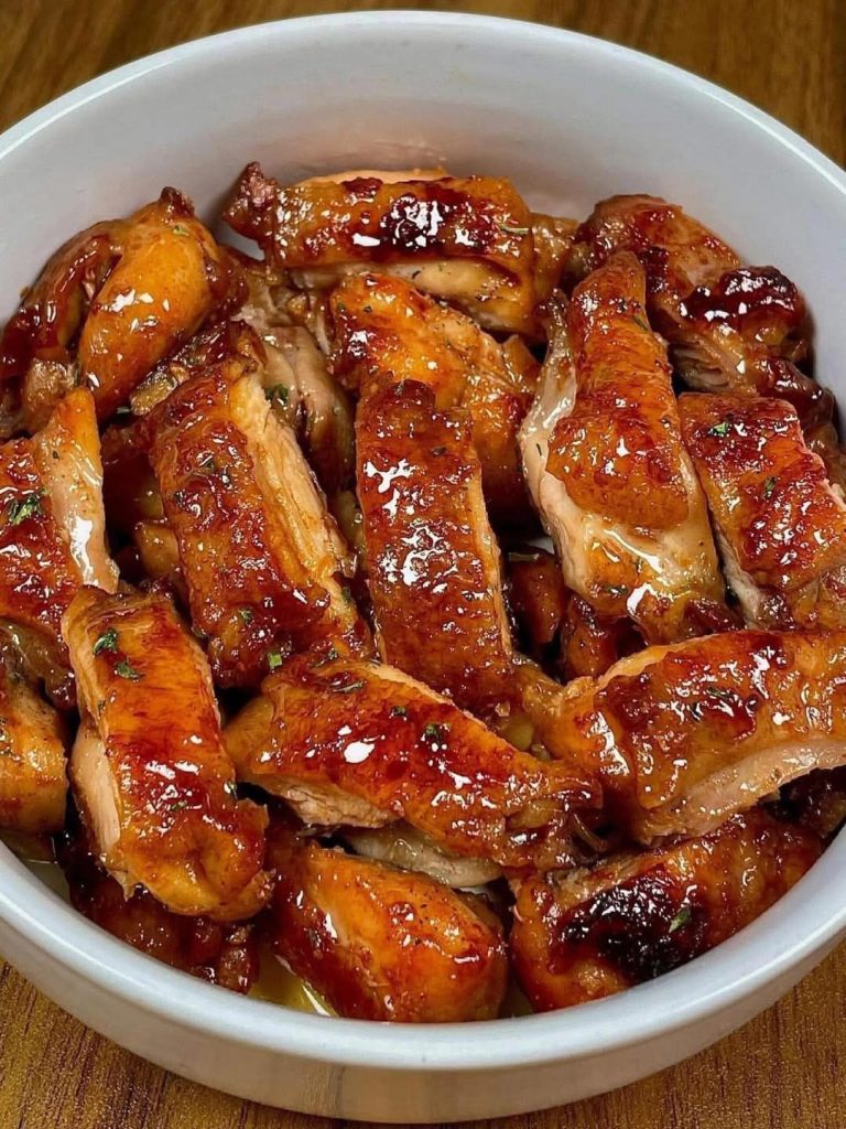 Return the chicken to the pan and toss in the glaze. Continue cooking for a few minutes, coating the chicken until it’s glossy and caramelized.